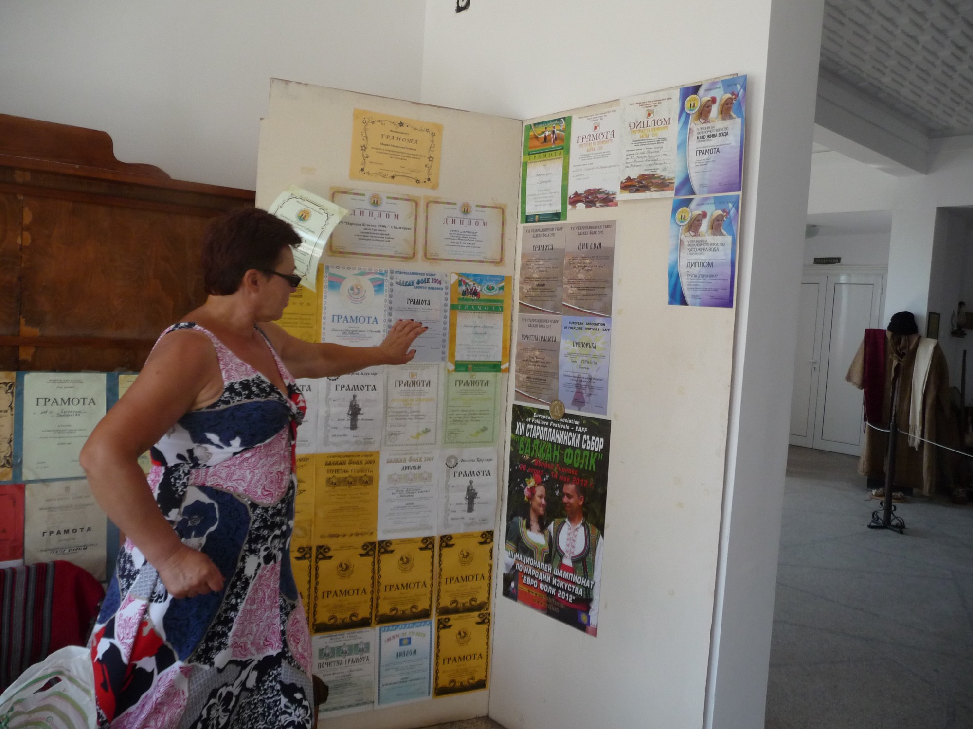 Průvodkyně expozice v Balgarevu - ukázka diplomů folklórních spolků