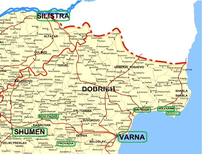 V regionu Dobrudža se nachází největší koncentrace gagauzskýh měst a vesnic a právě v této oblasti koncem června 2012 byl prováděn náš výzkum. V tomto regionu bylo zamýšleno navštívit především město Kavarna a vesnici Balgarevo. Balgarevo je malá vesnička, která se leží u Černého moře a čítá 1350 obyvatel. U Černého moře najdeme taktéž městečko Kavarna.