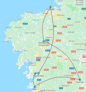 Prvním městem, které jsme navštívily bylo Santiago de Compostela. Mnoho poutníků zde končí svojí Svatojakubskou cestu (Camino de Santiago). Tato atmosféra je cítit po celém městě. První den jsme využily k návštěvě již výše zmiňovaného muzea Museo de Pobo Galego. Muzeum se věnuje kultuře Galicijců. Především se zaměřuje na oblasti moře, obchodů, tradiční hudby a oblečení, architektury. Bylo založeno v roce 1976 a jeho hlavním účelem je rozšiřovat povědomí o galicijské kultuře a historii. I přes fakt, že skoro veškeré informační tabule byly napsané v Galicijštině, bylo velice zajímavé toto muzeum navštívit.