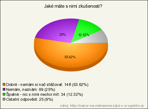 Dat Vu Tien: Abych upřímně odpověděl, ano, cítím se diskriminován, a to v negativním slova smyslu. Například preferování českých kandidátů na post prací/brigád, ačkoliv vietnamský kandidát a český, jsou na stejné úrovni co se kvality a inteligence týče. Dále přístup k vietnamskému zákazníkovi jako takovému. Spíše vietnamského zákazníka berou jako přítěž. Je zde veliká netolerance, předpojatost a předsudky. ( Ono to na druhou stranu zas tak horké není, beru to z obecného hlediska, já osobně mám kvantum českých kamarádů, ale realita je holt taková.)